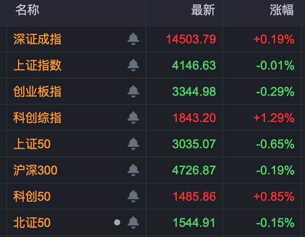 本日,A股小幅震憾,主要股指涨跌互现,深证成指、科创综指、中证500等稳步高潮,上证指数、创业板指、北证50等微幅下降,成交进一步放大至2.56万亿元。
