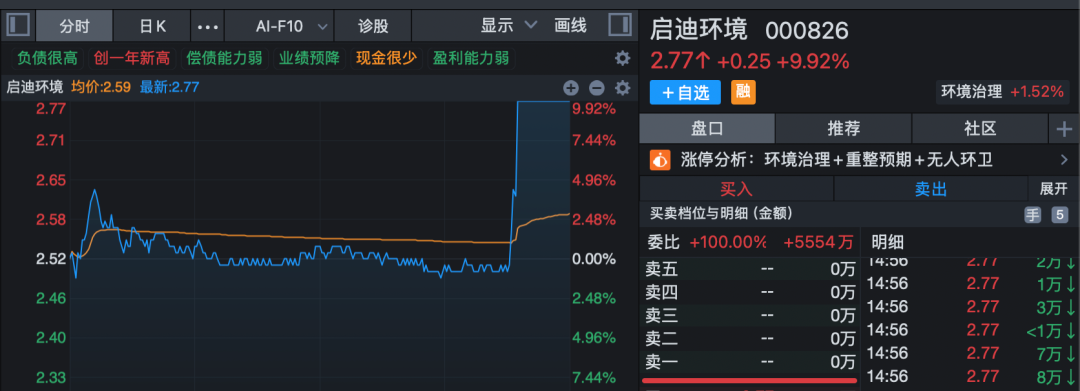 商场热门方面,环保见解股尾盘出现放量抢筹景色,板块指数在临了半小时放量拉升创5年半新高。中科环保(301175)不才午两点半后仅约4分钟技能垂直20%涨停,启迪环境也仅用约5分钟从下降现象直线拉直涨停,新安洁、永清环保、蒙草生态等尾盘也纷纷出现异动拉升走势。